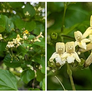 1️⃣枚目⇒エゴノキ 2️⃣枚目⇒ハマクサギ ✳️シソ科 🏷️白い水曜日 🏷️2021年同期の会NO.9 ハマクサギの花は白から クリーム色に変化します クサギの名前の由来である 臭い匂いは葉っぱの匂い お花は良い香りがします。.:*♡ 実家の山道