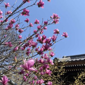 雨の土曜日☔ 青空に木蓮の花 奥はサンシュユの黄色の花🌼 ②花桃と夕陽 ③夕方散歩 飛行機雲の残り雲☁️ ④カラシナにくっ付いた紋白蝶 白い物が沢山付いてて な〜に? でした♪ 夕方なので寝る準備⁈ ⑤団地の中庭 オオシマザクラの白い花が もう咲いてた🤍💚 暖かいから 何もかも一斉に⁈ 🏷️土曜はお空の発表会 参加します♪