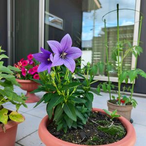 小さな鉢植えですが桔梗が咲き始めました キキョウ キキョウ科キキョウ属 英名「Balloon flower」 和名「キキョウ(桔梗)」 別名「ムラサキバナ(紫花)」 花言葉「変わらぬ愛」「清楚」「誠実」「気品」 人気の投稿に入りました 7月 8日 ありがとうございます 🙇♂️🥰 車庫にて 23.07.03