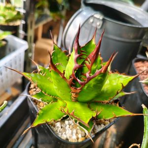 今日は雨だし、前からやらなきゃと思ってた、多肉やアガベの植え替えや仕立て直しをしました🪴 1️⃣ハオルチアはお花を全部カットして元肥を入れた土に植え直し。花友さんに頂いた猫ピックを挿してみた🐈♡ 2️⃣アガベチタノタパンダの赤ちゃんも、根っこを整理して元肥を入れた土に植え直し。 お水の頻度を上げたから、成長スピードも上がったような…🤭 3️⃣上から見たpic。アガベチタノタシーザーも古い根っこ整理で植え直し。 4️⃣伸び伸びだった多肉たちは、カットしたりお1人様に。 5️⃣アロエ翡翠殿は、成長して頭が重くなったので思い切ってカット✂️ ↖️からの↗️。 子株も出て来てました🌱かわいい♪ みんな元気に育ってね〜😊💚