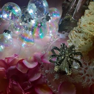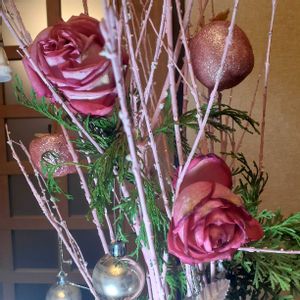 こんにちわ❤️ Christmasが近づいてきたのでChristmasバージョンをアレンジしてみました❤️✨💍✨ 使ったバラは今もさき続けてくれているウエディングベルズ🌹 2枚目の松ぼっくりはペイントしました🎵 バラとピンクのChristmas🌹つづく