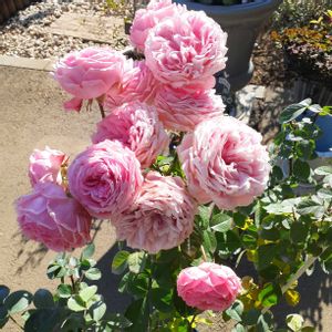 こんにちわ~✴️ 今日の埼玉は晴れてますが、物凄い強風で寒いですね🥶 バラ大丈夫かな🤔 ①もうすぐ全開リュートさん、枝が強風でかなり揺れていました 綺麗です✨ ②ハンスゲーネバイン、今日もかわいいミルキーピンクちゃん🌹 ③ウエディングベルズもうすぐ全開 強健で耐病性に強い素敵なバラさんコルデス✨🌹 ④レオナルドダヴィンチが800円だったのでお迎えしました😊😊❤ ずっとやってみたかった木にツルバラを誘引に挑戦してみま~す🌹 ⑤今日だけ100円明日は200円といわれたら、絶対買いますよね🤣 葉牡丹が100円とは😍😍😍 葉牡丹の寄せ植えを作りました❤️ 使ったお花は葉牡丹、ジプシーかすみそう、ジュリアン元気に育ちますように🙏🙏🙏💝💝