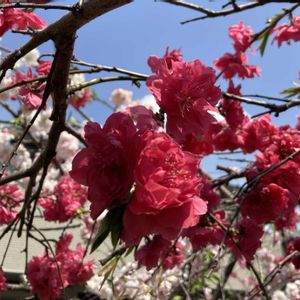 少し前のpicですが、庭の花桃が今年はたくさん花をつけました🌸 剪定をがっつりしたからかな? 謎です お気に入りの公園の桜は今は葉桜になってます🍃