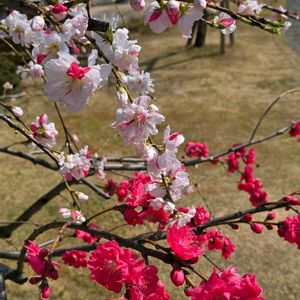 買い物に行く途中 川沿いの遊歩道にに咲くユキヤナギ びっしりと咲いたユキヤナギが円柱のようになって満開 少し離れた団地の源平桃 4cmほどのお花が ピンク色1色🩷 白🤍にピンク色🩷の模様が入ってるお花 真っ白🤍なお花が混ざりながら咲いています ご近所の濃い紅色の花桃 満開になった乙女椿がなにかお喋りしていそう💕 真ん丸い日向水木の木も今 満開です💛 やっと春を迎えたって教えてくれた木たち🌳でした