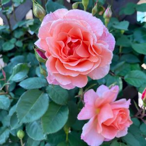 🌹サンセットグロウ よく咲くバラです😊 我が家のフェンスを飾ってくれていましたが、日当たり良好の姉の家に引っ越ししました🏠 引っ越しにあたり結構大胆に剪定しましたが、沢山の花を付けていました🌹 やっぱり日当たりは大切ね☀️