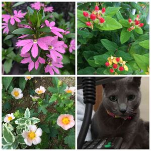 冬越ししたサンクエール。 ヒペリカムの赤い実。 マルバストラム。 ギンちゃん。