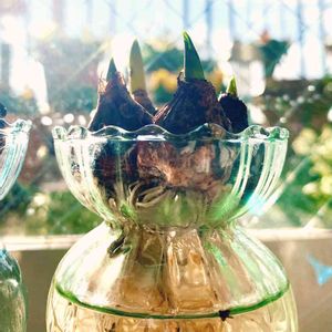 冬に咲いて春に土に埋めていたムスカリせんも芽が🌱出ていましたので水栽培に😙
