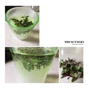 混み合ってるところの葉たちを収穫して はじめてハーブティーにしてみました (^ー^* )フフ♪ お湯を注いだだけです あっという間に爽やかないい香り