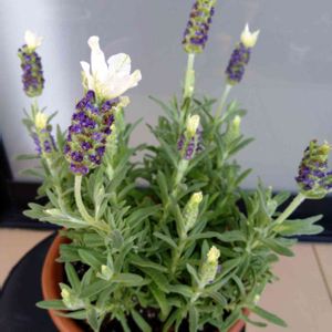 おはようございます✨ 今朝も良いお天気です☀️ 綺麗な青空が広がっていて気持ちいいです✨ 茶色の植木鉢の中は、オレガノ ミルフィーユリーフとラベンダーです🌼😊