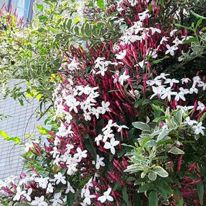 家の暴れん坊😅 ジャスミンがそこいらじゅうから 咲き始めました➰❤️ 窓を開けると、とっても良い香り(*^^*)