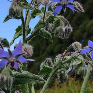 ボリジが下を向いて咲いてます💕 花を見るために、下から撮りました😊 昨年の零れ種から咲きましたが、 貴重な一本です 医療従事者及びコロナと闘っている方々に感謝👏