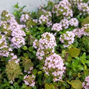 💠クリーピングタイム💠 昨日出逢った「姫ライラック」を遠目に見たときには、 タイムやオレガノ(ハーブ)の花かと… こちらのタイムは花壇に咲いていました。 タイムは香りよし、お料理にも使えて、 雑草防止対策にも… 芝桜みたいにグランドカバーにしてみたいものです。