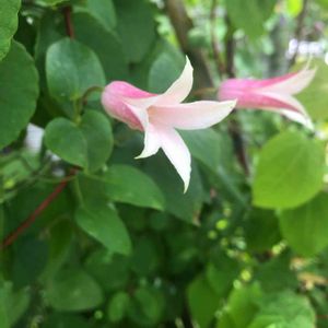 クレマチス 琴子開花しました テキセンシス系は今から盛りですね 優しい色で好きなお花です 桂の木に誘引しています 桂の葉が次から次にモリモリしてくるのでいつのまにか琴子の下の方は日が当たらなくなってます 頑張って伸びれば日が当たるのでドンドン伸びて欲しいです