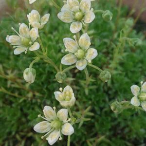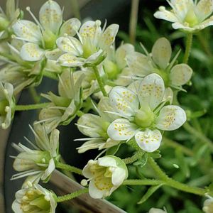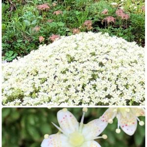 シコタンソウ(色丹草) ユキノシタ科 このまま雪の下にずっぽり埋もれても平気なこ*** ゆえに…花が終わった夏場は涼しい木陰へ移動デス🌳