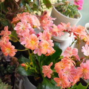 二年目のレウシア今朝咲いてました。次々に 咲くから大好きです。 色ちがいも 見てみたい