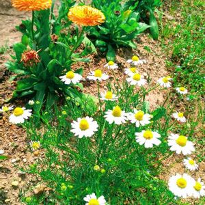 畑のこぼれ種のカモミールも満開です🌼良い香り😊畑が華やぎますね。