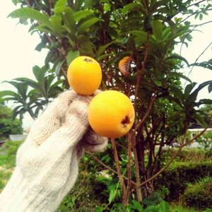 ビワですっ! 2、3年前に強剪定してからその存在を忘れられておりましたが、いつの間にか立派な実をつけてくれていたようです。しかし、収穫しようと思った時には既にほとんどが鳥の餌食になってしまっていたようで😅葉の裏に隠れていたものを5、6個だけもいできました。デカいです。5cm弱ありますね。味はどうかな〜?