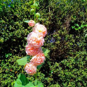 アルセアも見事に咲きました🌸去年は虫に食われまくって花をつけられなかったので、二年越しです。アオイ科はほんと食害に逢いやすいですね(><)