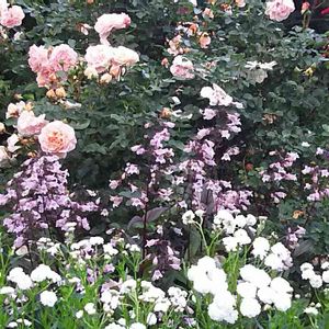 真ん中で咲いてるペンステモンは バラとの相性がイイですね 特に葉っぱの色が庭を引き締めてくれます✨