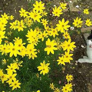 "ご飯まだ〰❔❗" 庭に出ると現れて付いて歩くようになった野良のノン😸 いつもは直ぐに餌をあげるのですが、糸葉春車菊に 気を取られていたら、ニャア〰❗とこの表情 コワッ(○_○)!!