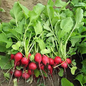 二十日大根 赤とグリーンが綺麗✨ 葉っぱは味噌汁に 🍴