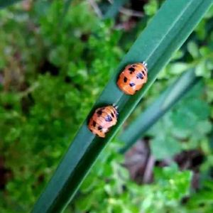 もう、疲れました😖 だから、 休憩だあ。。。((( ・Θ・) ♪ 虫と遊ぼうシリーズ🐜🐞🐌🐛🐝1⃣ ※あなたの後から、ついて行きます!何処までも。。。 テントウムシ🐞のサナギです‼️