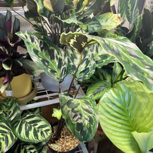 台風来てるのでジメジメ蒸し蒸し🥵 最近アロイドばかりなのでたまには原点に戻りクズウコンの仲間達😊 カラテアはアナコンダグリーンが我が家で生き生きしてます👍 マランタはカイガラムシが😅 そんな中ライトベインは比較的調子が良いです✨