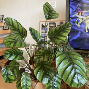カラテア・オルビフォリア 去年植え替えてから一段と大きくなってます。 ちょっと根詰まりの兆候があるので近く植え替え予定。 写真2枚目が去年の植え替え直後。