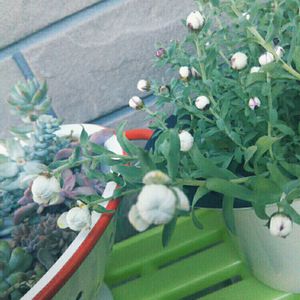 玄関先の花かんざし もうすぐ咲きそう🎵 出掛けに撮ったから 上手に撮れなかった💦