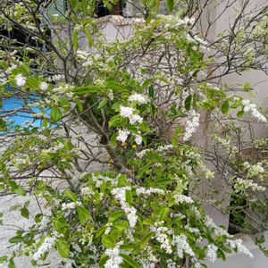 以前 垣根にしていたプリペット(べット)が一本だけ残してあって 今 花が咲いています 白くて綺麗なのですが、これが垣根となると強烈な匂いを放ち、人によって好き嫌いがあるのでやめたんです🤭☺️