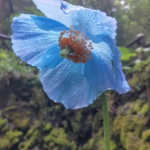 愛媛県東温市 皿ケ嶺 常に涼しい風が流れる風穴傍に咲きます。 別名はブルーポピー。