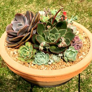寄せ植えの仕立て直しーその⑦ 最近少し忙しくなったので、新入りの多肉ちゃんのお世話を先月引っ越してきた近隣🏘の小人にお願いしようと思います。やってくれるかな😁 我が家のエケベリア丼1号を箱庭に大改造しました🎶 タグを付けてないのは前のエケベリア丼にいた子です🌵 ‘やりももの寄せ植え⑩’の🏷で改造前のエケベリア丼が見られます🤗
