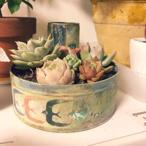そのうちに遊ぼうと取っておいたフライングタイガーのクッキー缶はエケベリア丼になりました。夜中の絵の具は楽しいな。 桃色のかわいこさんはオンスローさん。 朱に締まっているのはロマンさん。 左手大きいレモンイエローはローラさん、その右手は原種コロラータさん。 センターのちびさんがラウイhybで1番奥に一際鮮やかなオルペットさん。 エケベリア、好きだなあああぁ。。。