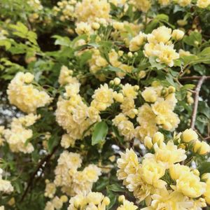 キモッコウバラが満開になりました✨✨ 今年はちょっと早いかな? またまた冬にきっちり誘引しなかったので、自由な感じでわちゃわちゃしてますが、オベリスクにたくさん咲かせてくれました❤️❤️ かわいい〜✨✨✨ ずっと見ていられる😍😍