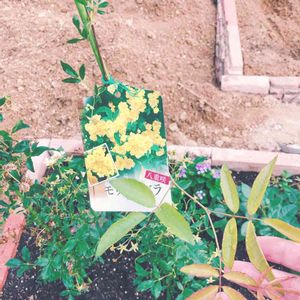 モッコウバラ2株安く買えたー♡ 欲しかったんだよー**(ू•ω•ू❁)** 嬉しいなぁ! でも、ちょっと弱ってるから、花壇に植えて見たけど、元気戻るかなぁー**(ू•ω•ू❁)**