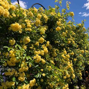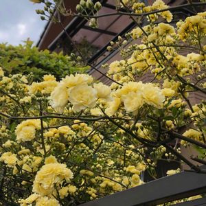 今朝の黄色モッコウバラ☔ この前からポツポツ咲き出してます・・匂いは無いけど可愛いがいっぱい💛💛💛 結局・・・ 中にベンチ置いての 綺麗なアーチ作れないうちに( ̄▽ ̄;) 昨年5/1~5/6頃picに昨年の様子があります(≧∇≦)💛🤍 さて今年はどうなる〜?😆