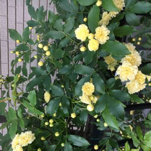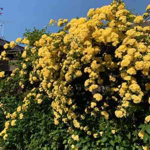 剪定も誘引もまともにして無いモッコウバラさん、今年はお手入れするぞ〜‼︎ 奥に見えてるのはホームセンター😊 隣にあると用事がなくても、花苗コーナーを覗いてはついつい買ってしまい、ダンナちゃんから「また買ったと〜😵」って怒られちゃいます😅 と、言いつつ誕生日や結婚記念日にはバラの苗を買って来る優しいダンナちゃまです❤ 去年買ってくれたのは、ブラックゴールド🌹これが、病気にかかりやすい!!薬剤散布で予防したけど、うどんこ病・黒点病と戦ってます😭