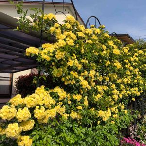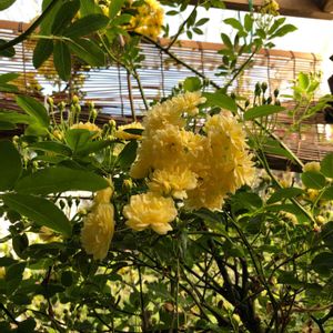 日中暖かかったので朝蕾だったキモッコウバラが一気に開き始めました💕 今日開花宣言でーす😝 去年は早すぎでしたが約二週間遅れの開花です