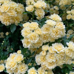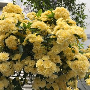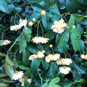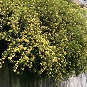 生憎の雨ですが花満開😆💕 先日、名前を教えて! に投稿したおとなりさんに咲いているキモッコウバラです😊