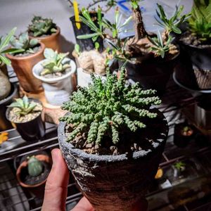 ユーフォルビアゴルゴニス 子株2個とあともしかしたら種もできてるかも。 種ができてるとしたら同時期に花咲かせてたオベサかバリダとのハイブリッドになります。なんかすごいのが出てきそう😱
