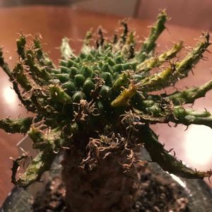 これって….. これって、復活って言っていいんでしょうか(இoஇ; ) 足が全部なくなってしまい、もう⭐️かなぁって思ってたゴルゴニス。 ダメ元で下の方をざっくり切って、乾かしてから土に挿しておいたら、最近緑色のが生えてきました🤣🤣 すごいなぁ、植物って…. ( ゚இωஇ゚)ウルウル また、タコ足になってくれるように慎重に見守ろうと思います🙏🙏