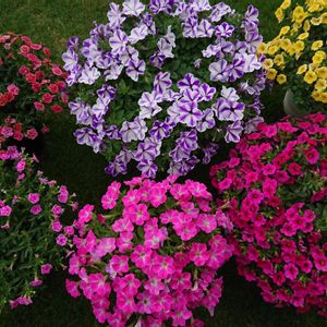サントリーフラワーズさんからのプレゼント品🎁4種、成長の違いにビックリ😆 サフィニアブーケ 小梅ちゃん🌸 サフィニアアート るりいろ風ぐるま💜 ミリオンベル チェリーピンク🍒 ミリオンベル イエロー💛 お気に入り 小梅ちゃん🌸摘芯なしで良いとのことだったので、この子だけ植え付け時にピンチなしでこんなに綺麗にまとまって😍 るりいろ風ぐるま、まぁ綺麗な💜ハート型💜にこんなに広がって咲いてます! どんどん広がるので、もうそろそろ切り戻しかな〜と その前にパチリ📸 ミリオンベルは成長ゆっくりだけど、綺麗に形良く咲いてくれています✨✨ チェリーピンク🍒の方がイエローより一回り大きいかな 同じ土、鉢、場所、一株ずつ植えて こんなに違うんですね〜🫢ビックリ