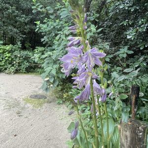 京都市左京区一乗寺 曹洞宗 詩仙堂丈山寺にて 9/4 📱 庭園のあちこちで 今はヤブランが たくさん目立って咲いてて 綺麗でしたよ😍🌿💜🌿 ① コバギボウシ ②スズムシグサ💜 ③ 薮蘭 桔梗の花が 少しだけ見られました💜 ④ 禊萩かな? ⑤ ヤブラン 和の庭に似合う花ですね〜🥰