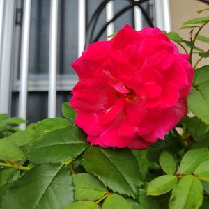 花弁の表が鮮やかな赤色 裏は黄色で丸弁の抱え咲きです。 花付きが非常に良くて トゲが少ないので扱いやすく グランドカバーやフェンスに向いてます。 5月16日 平塚花菜ガーデンにて撮影