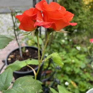 おはようございます😃🌹 今日はあまり気温が上がらない様ですね。 早朝の風は気持ち良かったです。 1枚👀 ご長寿さん🌹です。 名前はわかりません。 写真2枚👀 プリンセス ミチコ キレイなオレンジ🧡色です。 ジュリア3番花も咲き始めました。 色が変わり、 3度楽しめます。 赤い一重の🌹 沢山ツボミを持ってます。
