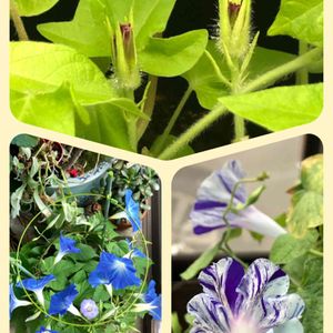 おはようございます😃 朝顔ハンギング~🤗 バンキングでも垂れ下がらずに上に行こうとするのョ~朝顔(笑) 垂れて欲しいんですけど💨