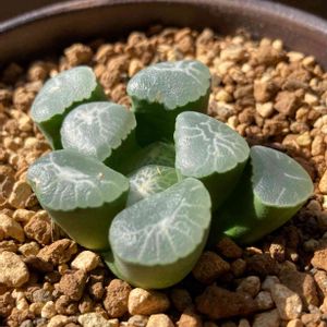 今日も日差しが強く、暖かいです。 朝からストレスブロックを多肉たちへ。 金曜日に届いた苗を紹介します。 万象 オーロラ。 だいぶ探していた万象の銘品。 オークションで。 葉が2枚枯れているからか、万象は人気が無いからか、私一人の入札。 しかし、この株には子株がいるのです✨ 親株を仕立て直しつつ、子株も育てられるのに、格安でした😁 3枚目、ロメオ✕クスピダータサンロベルト。 他の苗を注文しようとしていた時に、同梱割で見つけた苗。 「紫式部(クスピダータパラス✕ロメオ)と似た交配だ!」 と思ってポチりました。 姿も紫式部っぽくてカッコいい👍️ ダーリーサンシャイン✕銀天女とセットで750円でした😌 これは…カッコよくなりそう😏 ちなみに、元々頼もうとしていたのは「トリマネンシス✕沙羅姫牡丹」でした。 これもまたいい苗でした。