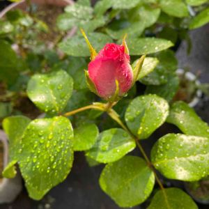 おはようございます☀ 台風接近のせい? 朝から猛烈な蒸し暑さ💦 普通に出勤だし、早々に雨戸閉めてしまったら、余計に暑い🥵 「ストロベリーアイス🌹」。 鉢を片付けてたら、1輪咲きそうなコ見つけた❣️ どうか台風さん、おとなしく通り過ぎてくださーい🙏