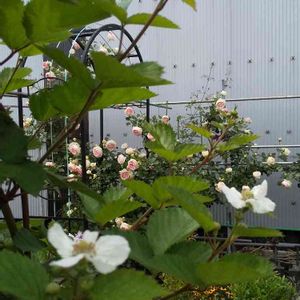 ブラックベリー(トリプルクラウン)この暴れ具合。一枚でやっと撮れた😅縦横4mはいってるだろう💦どう誘引すれば収穫しやすい❓️☹️