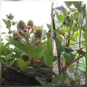 今日は☔️ ブラックベリーは元気溌剌😰 160cm位上に伸び、そこから横に150cm位でしょうか❓️取り敢えず束に縛って邪魔にならない様に留めてます。 これから台風もくるし、収穫しやすい様に誘引しなければ😅 皆さん、どのように誘引してますか😧